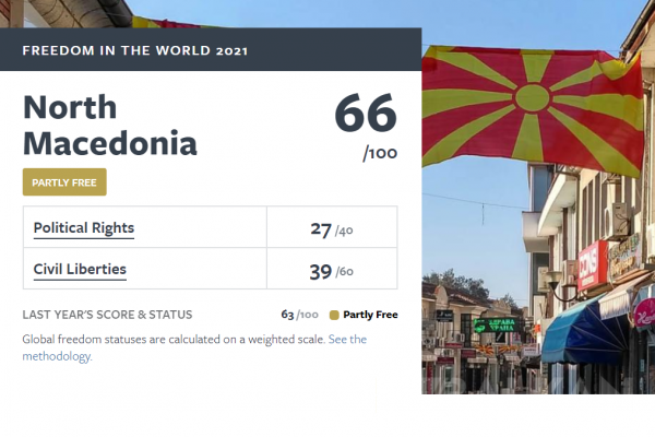Geçen yıla göre üç puan daha kazanan Makedonya’nın yanı sıra kısmen özgür demokrasiler arasında Sırbistan, Kosova, Arnavutluk, Karadağ ve Bosna Hersek de yer aldı.