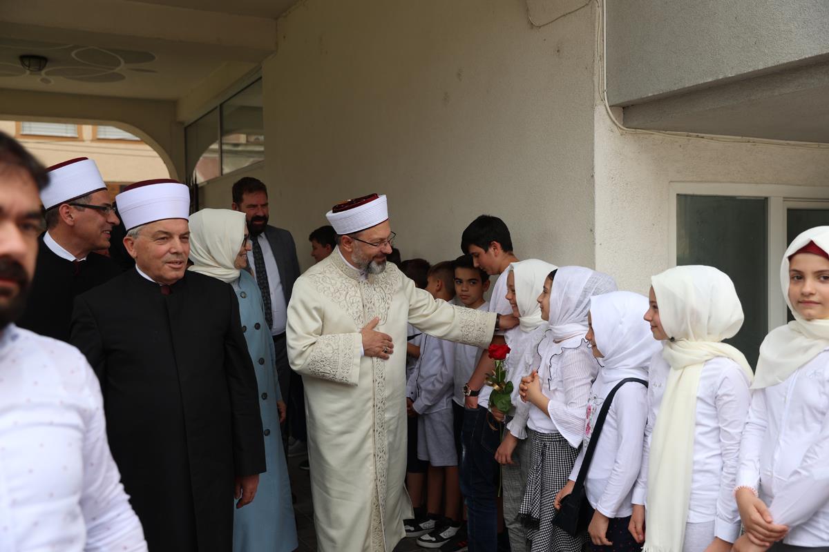 Başkan Erbaş, konuşmasının ardından caminin bahçesindeki Hafızlık ve Güzel Kur’an Okuma Enstitüsünü ziyaret etti, öğrencilerle sohbet edip hatıra fotoğrafı çektirdi.