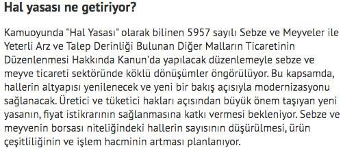 Hububattan yumurtaya, süt ürünlerinden tavuk etine kadar birçok üründe fiyat artışları yaşanıyor. Hal yasası Meclis gündemine gelecek. Komisyonculuk tarihe karışacak. Satışta rekabet üst düzeye çıkacak. Yeni haller, yeni atış alanları ve üreticlerinin satış kabiliyetlerinin artırıldığını göreceğiz. Gıda ürünlerine çok daha makul oranlarla erişilmesi açısından bu önemli. Sabah'ta yer alan habere göre, 1 Ekim'de Meclis'in açılmasıyla birlikte vatandaşları ve mükellefleri de rahatlatacak düzenlemelerin yer aldığı ekonomi paketlerinin de teker teker yasalaşması bekleniyor. Fahiş fiyat artışının önüne geçilmesi için üreticiden tüketiciye ulaşım zincirini sağlayan Hal Yasası'nın çıkarılması gündemde. Hal Yasası ile yüksek fiyatların yansıdığı gıda fiyatlarında aracılık maliyetlerinin düşürülmesinin sağlanacak