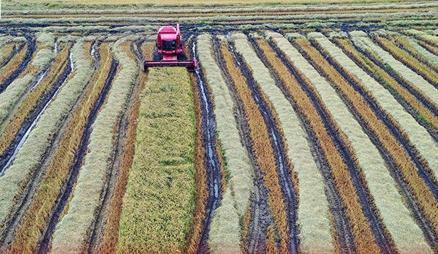 Verimi ve getirisi dolayısıyla kentte "beyaz altın" olarak nitelendirilen çeltiğin hasat edilmesi için biçerdöverler tarlalara girdi.