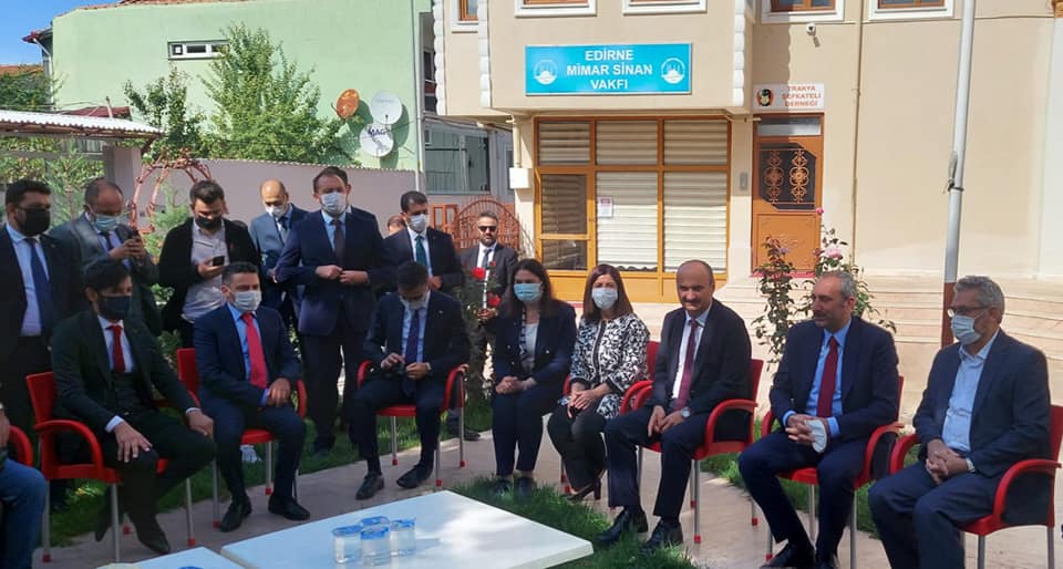 Beraberinde Edirne Valisi Ekrem Canalp, Bakan Yardımcısı Yakup Moğul, Ak Parti İl Başkanı Belgin İba, Edirne Milletvekili Fatma Aksal, Adli Yargı Adalet Komisyonu Başkanı Necati Görgülü ve Edirne Cumhuriyet Başsavcısı Mustafa Çakmak'la gelen Bakan Gül, Vakfın çalışmalarıyla ilgili bilgi aldı.