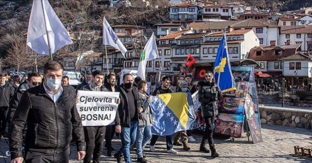 Yürüyüşün ardından organizatörler tarafından okunan açıklamada, Bosna Hersek’in bölünmesine yönelik yapılan çağrıların kabul edilemez olduğu vurgulandı.