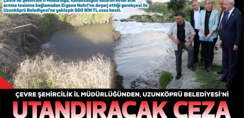 Çevre ve Şehircilik İl Müdürlüğü’nün 2020 yılı aralık ayında yapmış olduğu fiziksel ve numune incelemesi sonucunda birden fazla noktada, önce kapalı sistem başlayıp akabinde ise açık halde bulunan hatlardan Ergene Nehri’ne Evsel Atık (kanalizasyon) suyu geldiği tespitinin ardından, Uzunköprü Belediyesine yazılan resmi yazıda söz konusu kirliliğin giderilmesi (arıtma tesisine bağlantısının yapılması) için 01.12.2021 tarihine kadar tanınan sürenin son bulmasının ardından 27.01.2022 tarihinde yapılan fiziksel ve numune denetimlerinde her hangi bir çalışma yapılmaması üzerine yaklaşık 500 BİN TL ceza kesildiği bilgisine ulaşıldı.