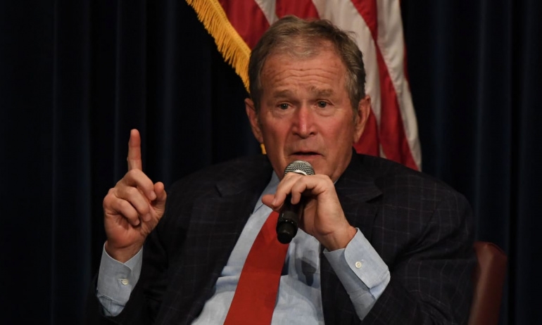 2003 yılında Irak'ın işgalini başlatan Bush, konuşmasında Rusya'nın Ukrayna'ya yönelik saldırılarına tepki gösterirken, bir cümlesinde Ukrayna yerine Irak deyince salonda ilginç anlar yaşandı.