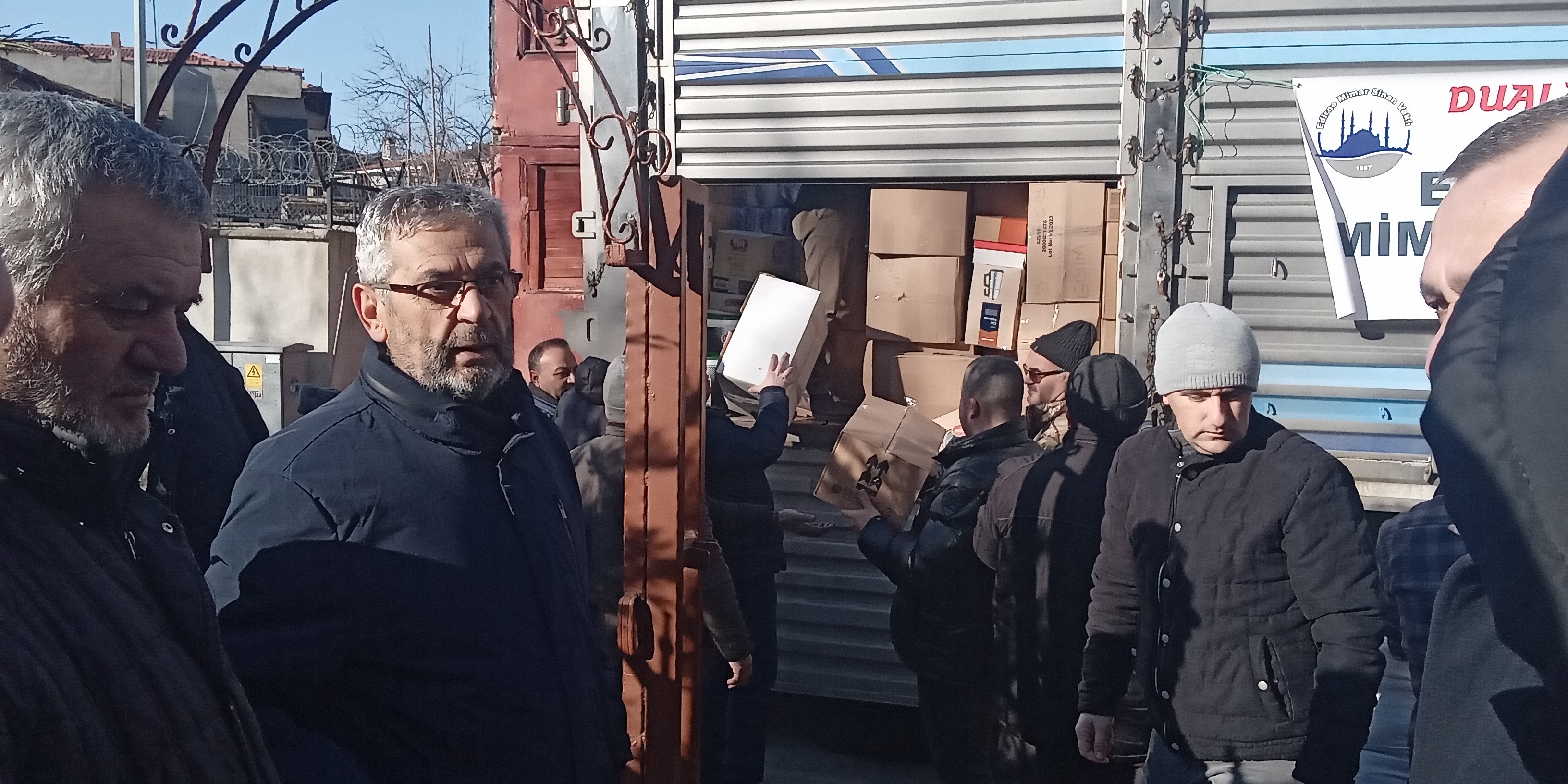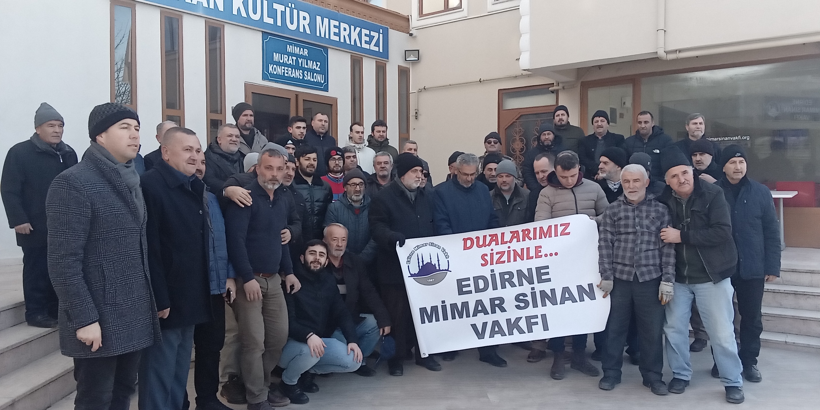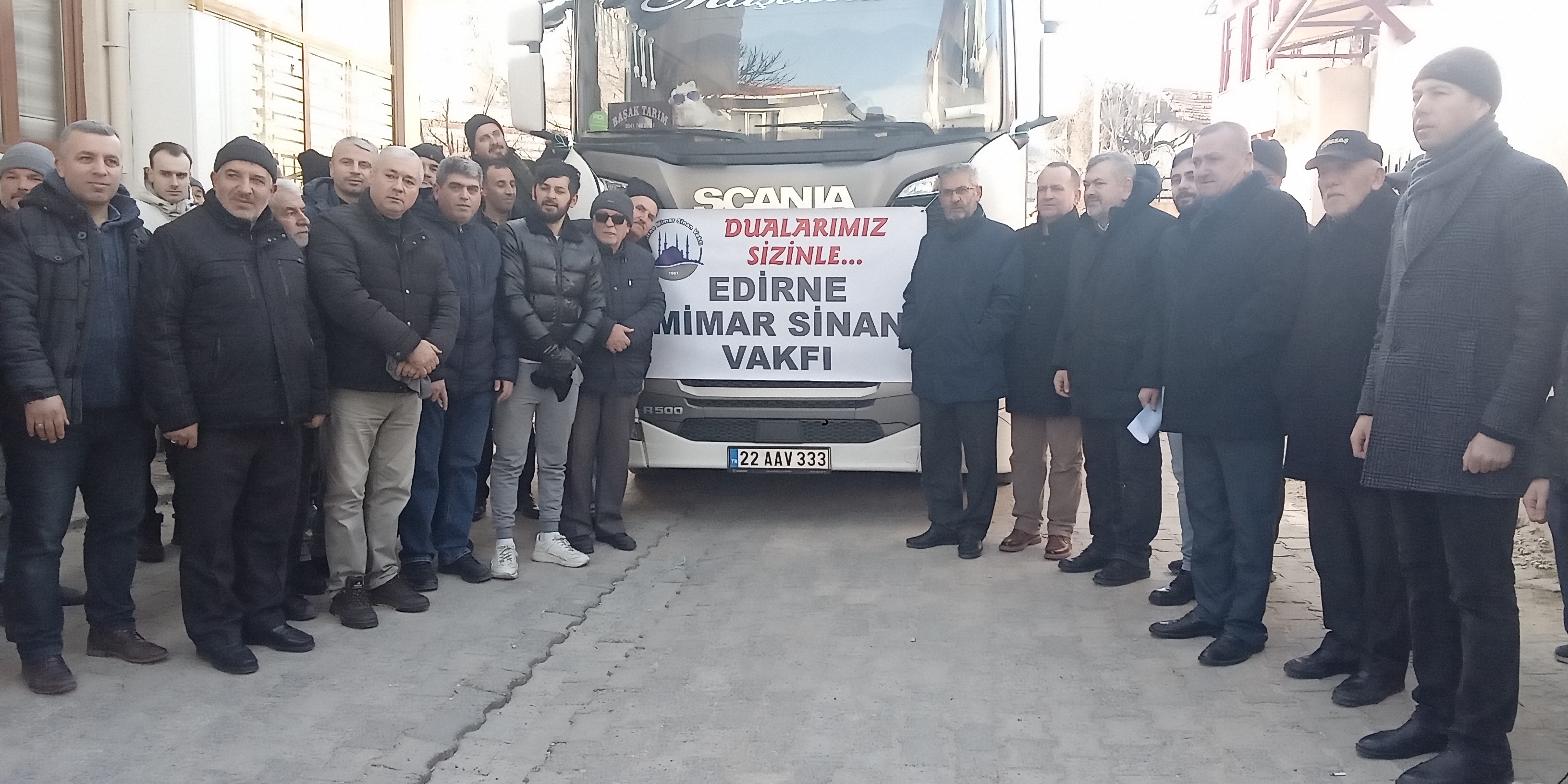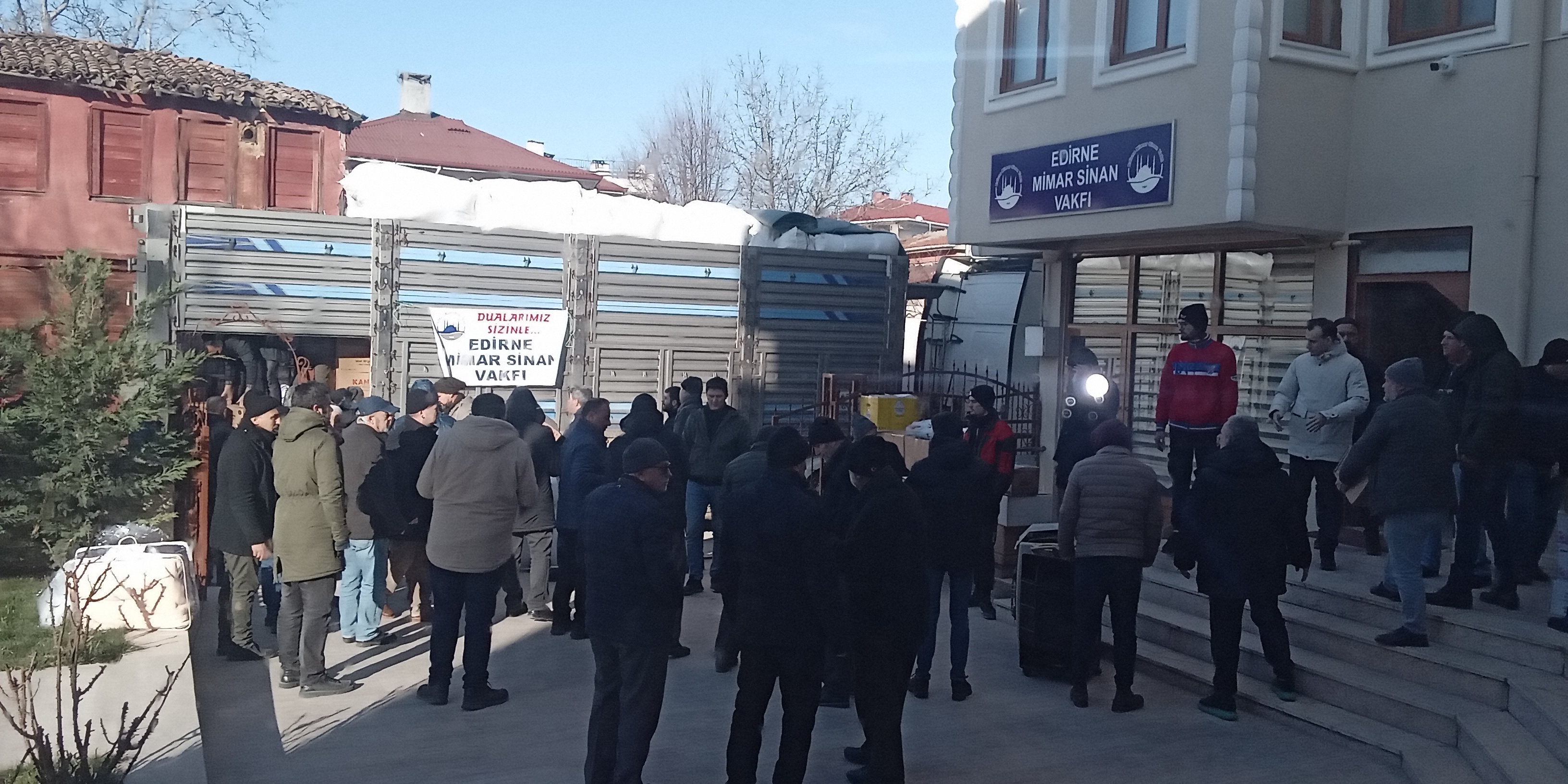 Edirne Sinan Vakfı Gönüllüleri olarak ısıtıcı, battaniye, mont, kışlık bot, konserve, içme suyu, uzun ömürlü gıda başta olmak üzere, süt, çocuk bezi, ıslak mendil, kağıt havludan oluşan malzemelerini, deprem sonrası yaraları sarmak adına bugün sabahın erken saatlerinde depremin yaralarını sarmak için el ele tek yürek olduk ve hazırladığımız tır yola çıkıyor dedi.
