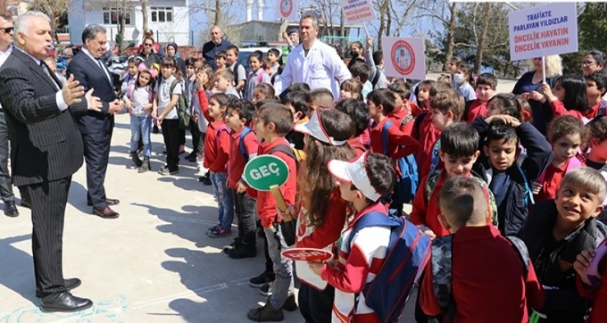 Ayrıca eğitim kapsamında uygulamalı olarak öğrencilerin trafikte nasıl görünür olabilecekleri hakkında bilgi verildi.