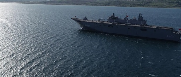 Lapseki Belediye Başkanı Eyüp Yılmaz, gazetecilere, TCG Anadolu'nun geçişini gururla izlediklerini söyledi.