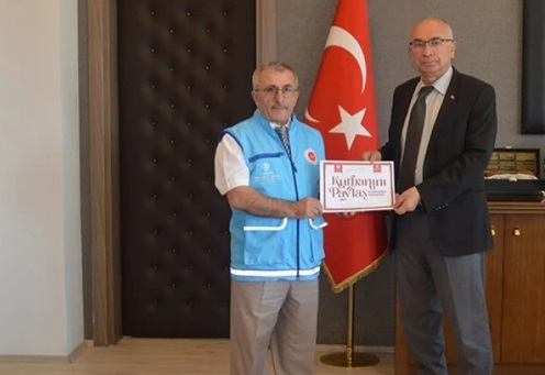 Kaymakam Yüce, Türkiye Diyanet Vakfı'nın "Kurbanını Paylaş Kardeşinle Yakınlaş" sloganıyla yürütülen kurban bağışı kampanyasına destek verdi.