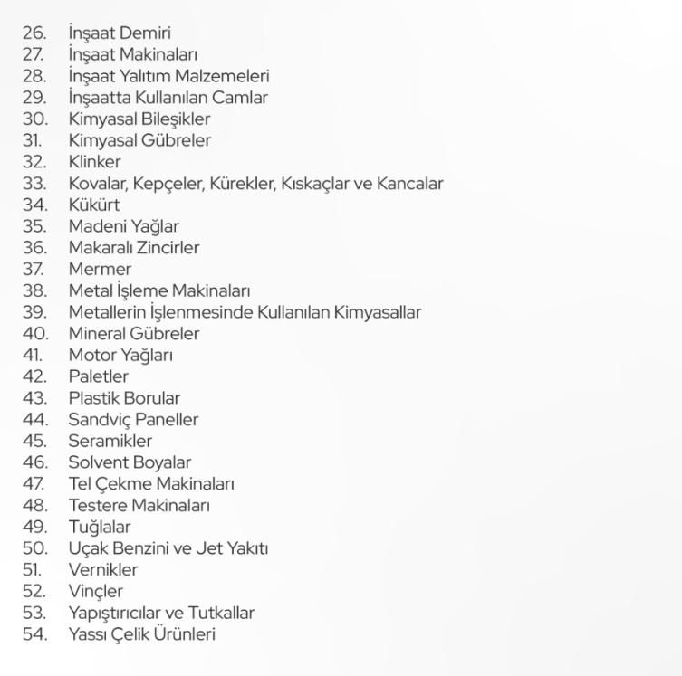 Bu doğrultuda, Türkiye, 9 Nisan 2024 tarihinden itibaren, ilk aşamada belirtilen ürün grupları altında yer alan ürünlerin İsrail'e ihracatını kısıtlama kararı almış bulunmaktadır. Bu kararın gerekleri Ticaret Bakanlığı tarafından derhal yürütülecektir.
