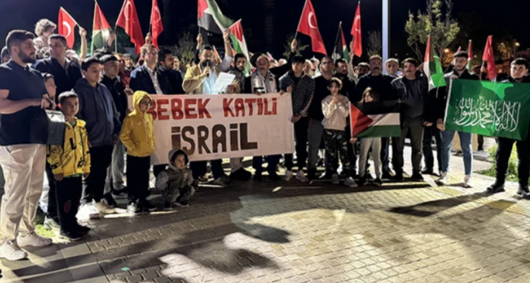 "Bebek katili İsrail" yazılı pankart taşıyan grup adına açıklama yapan Edirne İHH İnsani Yardım Derneği Teşkilatlanma Başkanı Mazlum Gül, dünyanın gözleri önünde bir soykırım gerçekleştiğini söyledi.