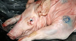 Kendi pisliği başta olmak üzere leş dahil her türlü şeyi yiyebilen ve Allah’ın kati suretle yenmesini yasakladığı domuz etinin yılda 3 milyon kilo olarak ülkemizde piyasaya sürülmesi şok etkisi oluşturdu. Hangi yola ve ne şekilde piyasaya sürüldüğü belli olmayan skandal gerçek Gıda ve İhtiyaç Maddeleri Denetleme ve Sertifikalandırma Derneği’nin (GİMDES) hazırladığı “Türkiye’de domuz eti yemeyen kalmış mıdır” başlıklı araştırmasında gözler önüne serildi. Düşük miktarda kırmızı et tüketen ülkemizde, 3 milyon kilo da domuz eti ve ürünlerinin piyasaya sürülmesi bu kadar da olmaz dedirtti. Etinde birçok hastalıklı bakteri barındıran ve iç hastalıklarının tetiklenmesinde en büyük etkenlerden olan domuz eti ürünlerinin iç piyasada dolanması vehametin hangi boyutlara ulaştığının da çarpıcı göstergesi oldu. Belli olmayan 3 milyon kilo domuz etinin ise hangi ürünlerde kullanıldığının bilinmemesi içinde bulunduğumuz tehlikeyi üst seviyelere taşıdı.