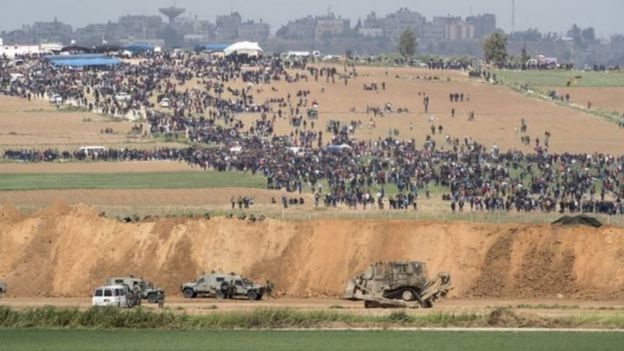 Tarihi Filistin topraklarındaki İsrail işgaline karşı direnişin sembolü haline gelen Toprak Günü'nün 42. yılında "Büyük Dönüş Yürüyüşü" için İsrail-Gazze sınırındaki tel örgüler çevresinde 6 ayrı bölgede on binlerce kişi toplanmaya devam ediyor.