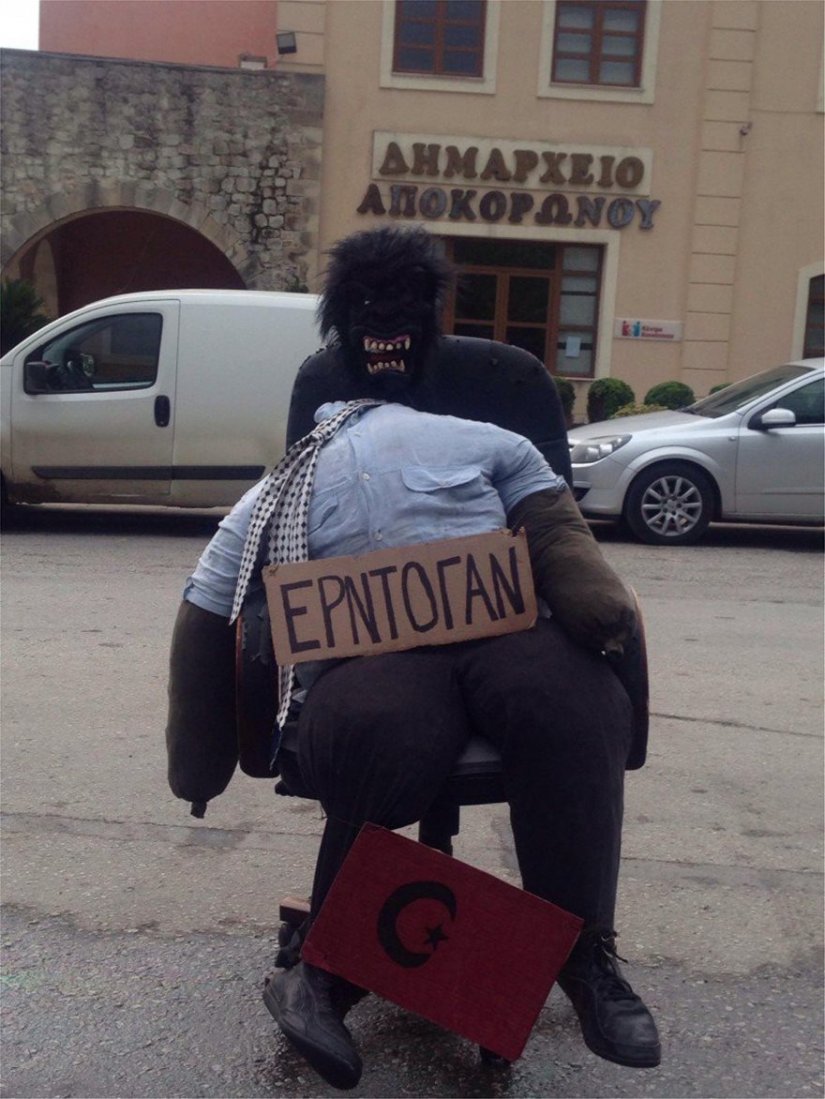 Yunanistan'ın Girit adasında Hanya’da ve Sfakia ile Sterna yerleşmeleri sakinlerince geleneksel olarak her yıl “tekrar diriliş=Anastasi” gecesinde Yahuda maskotunun yakılması geleneğinde bu yıl Türkiye Cumhuriyeti Cumhurbaşkanı Recep Tayyip Erdoğan'ın maskotunu yaktılar.