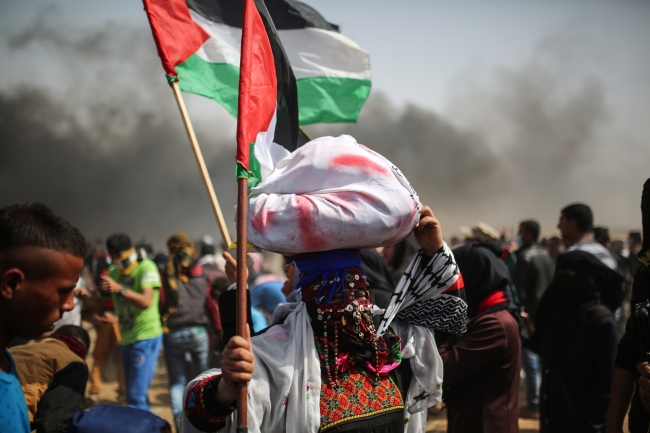 İsrail askerleri ise "sürgün edildikleri topraklarına geri dönmeyi ve 2006'dan beri Gazze'ye uygulanan hukuksuz ablukanın kaldırılmasını" talep eden sivil halkın üzerine gerçek mermilerle ateş açıyor.