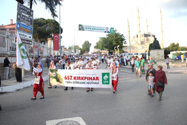 657. Tarihi Kırkpınar Yağlı Güreşleri ve Festivali, kortej yürüyüşü ile başladı. Çorlu'da dün meydana gelen tren kazası nedeniyle güreşlerin değişmez ögesi davul ve zurna, kortejde yer almadı.