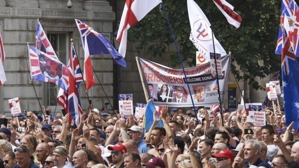 Hakkında yayın yasağı bulunan bir davada sanıkların kimliklerini ifşa ettiği için mayıs ayında hapse mahkum edilen aşırı sağcı İngiliz aktivist Robinson'ın serbest bırakılması için cumartesi günü başkentte geniş katılımlı gösteri yapılmıştı.