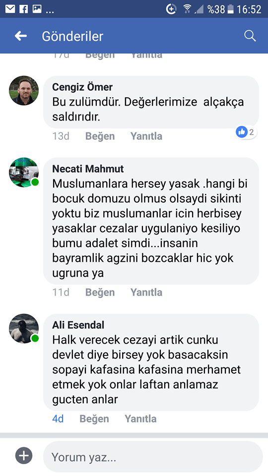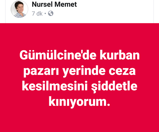 "Dokuz aydır uğraşıyoruz, bugün herşey ortaya çıktı. Nasıl Seçek'te polisleri, MAT'ları koydular da millete müsade etmediler, aynı şekilde bugün de Azınlık'ta 90 seneden beri Kurban kesme ibadetini bu hükümet sonlandırmış oldu. Doğu Makedonya Trakya Bölge Eyalet Meclisi'nde toplantı yapıldı, güya bu meseleyi çözeceklerdi ve hiçbir problem yaşanmayacaktı. Anlaşıldı ki hepsi yalan ve aldatmacaymış. Açık ve net söylüyorum bu azınlığımızın dini değerlerine yapılan saldırıların ne başı kaldı ne sonu kaldı. Müftü (naiplerini) atadılar, Kurban ibadetini yasakladılar, Cuma namazlarına gitme özgürlüğünü okullarımızdan kaldırdılar. Müftülüklerin içini boşalttılar, ama kendi Ortodoks Kilisesi'ne karşı Çipras hiçbir müdahalede bulunamadı. Ama bizim SİRİZA milletvekilleri aracılığıyla bize bu haksızları yaptı.