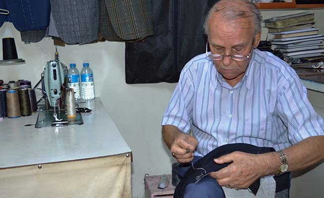 Kırklareli'nin Lüleburgaz ilçesinde 63 yıldır terzilik mesleğini sürdüren Ali Umutlu, ayağından dikiş makinesinin pedalını, elinden iğne ve ipliğini düşürmüyor