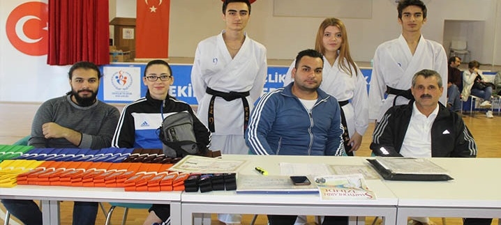 Karate kuşak terfi sınavına Tekirdağ Gençlik ve Spor Şube Müdürü Abdülkerim Kasap ve aileler katıldı.
