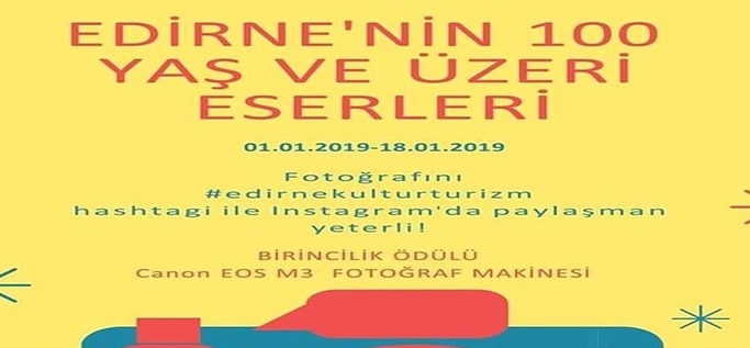 İl Kültür Ve Turizm Müdürlüğü, üç nehrin (Arda-Meriç-Tunca) kucakladığı benzersiz bir coğrafyada tarih öncesi, Roma, Bizans ve Osmanlı’ya ait binlerce yıllık tarih ve kültür mirasını bugüne taşıyan, Osmanlı İmparatorluğunun ikinci başkenti, Türkiye’nin Avrupa’ya açılan kapısı, bir Anıtkent ve Dünyada metrekareye düşen tarihi eser bakımından ikinci şehir olan Edirne’nin 100 yaş ve üzeri eserlerini en güzel anlatan fotoğrafı arıyor.
