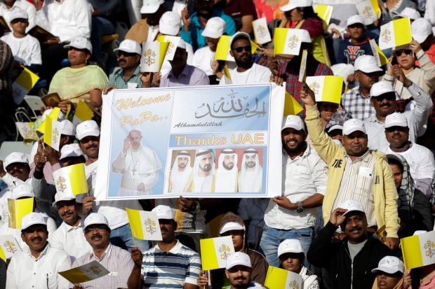 Papa, bugün de Abu Dabi'nin en büyük stadyumu olan Şeyh Zayed Arena'da, 135 bin civarında Hristiyan'ın katılımıyla kitlesel bir ayin düzenlendi. BAE'de, çoğu Filipinler ve Hindistan'dan olmak üzere yaklaşık bir milyon Hristiyan yaşıyor.