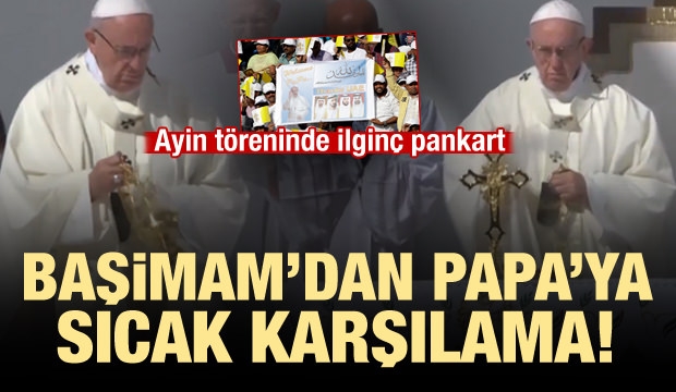 Papa için açılan bir pankart: Papa hoşgeldin... Elhamdülillah, Teşekkürler BAE