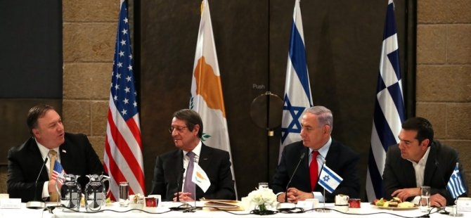 İsrail lideri Binyamin Netanyahu, Yunanistan Başbakanı Aleksis Çipras ve Güney Kıbrıs lideri Nicos Anastasiadis Kudüs'te zirve yaptı. Zirveye ABD Dışişleri Bakanı Mike Pompeo da katıldı.