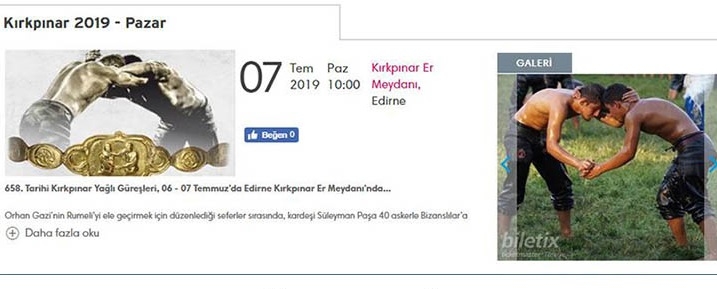 01-07 Temmuz 2019 tarihleri arasında gerçekleştirilecek olan Kırkpınar Yağlı Güreşleri’nin biletleri Biletix’te satışa sunuldu. Edirne Belediye Encümen Kararı’yla 5 Temmuz 2019 Cuma günü gerçekleştirilecek güreşler için girişler ücretsiz olarak belirlendi. 6 Temmuz 2019 Cumartesi günü için biletler 50 ile 60 TL, 7 Temmuz 2019 Pazar günü için ise biletler 70 ile 80 TL’den satışa çıkarıldı.