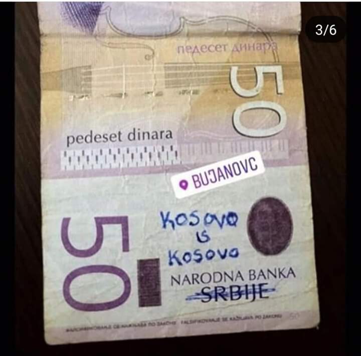 Arnavutlar da Sırp Dinarı ve Eurolar üzerine Kosova Arnavutluk' tur ve Kosova Kosova' dır şeklinde yazılar yazıp sosyal medyadan paylaşmaya başladı.Etnik gerilimin yüksek dozda hissedildiği Balkanlarda, bu kampanyaların çatışma riskini körüklediği ifade ediliyor.KOSOVA SAVAŞI