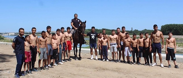 Edirne Kent Ormanı’nda çalışmalarına devam eden Şahi Spor Kulübü sporcuları, atlı antrenör eşliğinde Meriç Nehri kenarında hava sıcaklığına aldırış etmeden antrenmanlarına devam etti. Sporcular hafif tempo koşu yaptıktan sonra dev araba lastiklerini kaldırıp, halat çekmeye başladı. Geleneksel taş kırma antrenmanını da bitiren sporcular antrenmanlarına böylece son verdi.