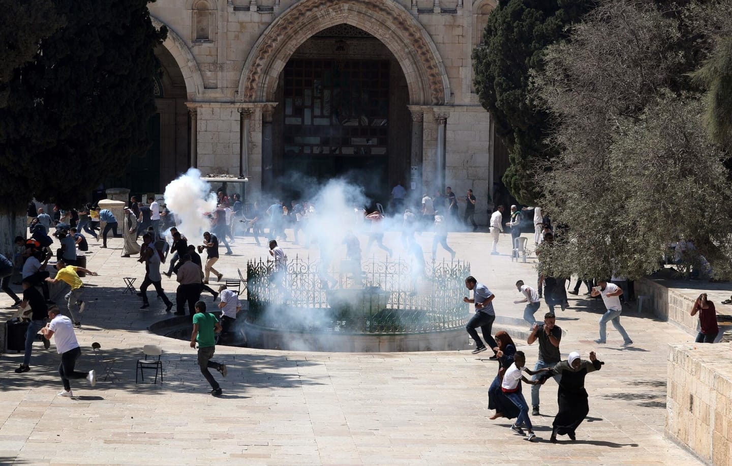 İşgal altındaki Doğu Kudüs’ün Eski Şehir bölgesinde bulunan Mescid-i Aksa’da fanatik Yahudilerin baskınlarını durdurmak için bir saat gecikmeli kılınan bayram namazı sonrası Harem-i Şerif’in batı yakasındaki El-Meğaribe Kapısı’nda toplanan yüzlerce Filistinli, İsrail polisinden fanatik Yahudilere kapıyı açmamasını talep etmişti.