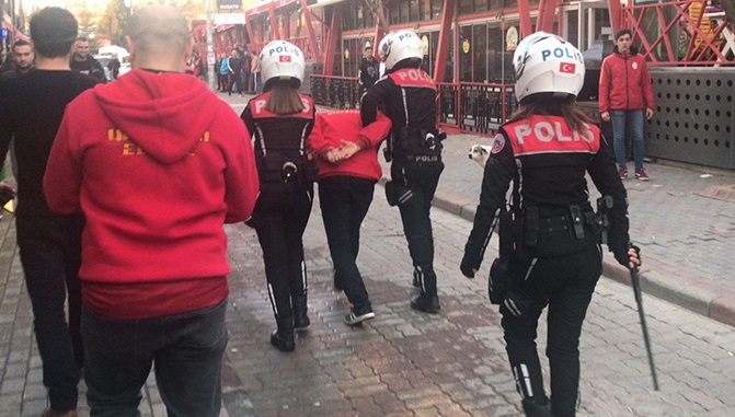 Üzerlerinde taraftarı oldukları takımların forması bulunan iki grup, Trakya Üniversitesi Ayşekadın Yerleşkesi önünde karşılaştı.