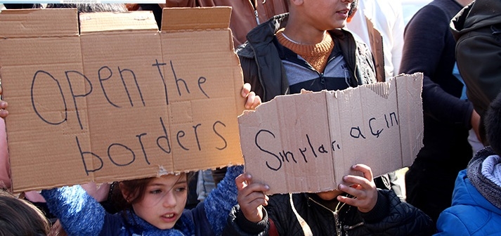 Türkiye-Yunanistan sınırında yer alan Doyran köyünde bekleyişlerini sürdüren çocukların öncülüğündeki düzensiz göçmenlerden oluşan grup, sınırı çizen Meriç Nehri'ne doğru yürüyerek, Türkçe, İngilizce ve Arapça "sınırları açın" pankartı açtı.