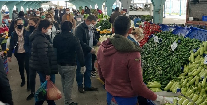 Dünyada hızlı şekilde yayılan korona virüs (Covid-19) salgınının önlenmesi çalışmaları çerçevesinde, sosyal hareketliliği ve insanlar arası teması azaltmak amacıyla, Cumhurbaşkanı Recep Tayyip Erdoğan'ın da açıkladığı yeni tedbirler alındı. Bu tedbirler kapsamında il ve ilçelerde pazar yeri, market ve toplu olarak çalışılan iş yerlerine vatandaşların ve çalışanların maske ile girmelerine karar verildi. Maske takma zorunluluğu, pazarlarda satıcılar için de geçerli oldu. Ayrıca, il ve ilçelerdeki meydanlarda sokak ve caddelerde; vatandaşların sosyal mesafeyi gözetmeden toplu olarak yürümelerine veya bulunmalarına izin verilmemesine, yan yana yürüyen vatandaşların ise yine sosyal mesafeyi gözeterek yürümelerine ilişkin tedbirler alındı.Bu çerçevede, Pazartesi Pazarı’nda tedbirlerin etkili olduğu görüldü. , Vatandaşlar, maske takıp eldiven kullanarak alışveriş yaptı. Öte yandan, zabıta ekipleri de pazar yerlerindeki tedbirlere ilişkin kontrollerini sürdürdü.