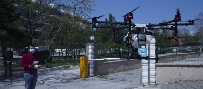 Tarım ilaçlamasında kullanılan hazneli insansız hava araçlarıyla, vaka görülen binaların ve çevresindeki binaların dış yüzeylerine havadan dezenfektan sıkılıyor. Daha sonra ekipler bu binaların içlerini de ilaçlıyor.
