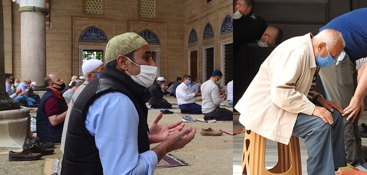 Alınan önlemler kapsamında cami avlusuna ve bahçeye sosyal mesafe çizgileri çizildi. Yaklaşık 2 ay sonra kapılarını cemaate açan camilerde yoğunluk yaşandı. Cuma Namazı için Selimiye Camii’ne gelen vatandaşlar, alınan önlemler kapsamında evlerinde abdest aldı ve getirdikleri seccadelerde namaz kıldı. Namaz sırasında yağan yağmura aldırış etmeyen vatandaşların kimisi şemsiye ile kimisi de başına yanlarında getirdikleri hırkalarını koyarak önlem aldı