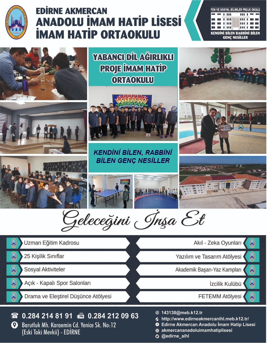 Edirne’nin İlk ve Tek Proje İmam Hatip Lisesi ve Proje İmam Hatip Ortaokulu olarak okulumuz