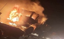 Cayır cayır yandı: Amerikan askeri konvoyunu ateşe verdiler