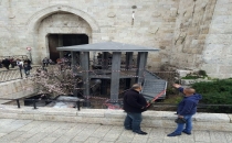 İsrail güvenlik güçleri, Mescid-i Aksa’ya girenleri kontrol etmek için Amud kapısına demir bir gözetleme kulesi yerleştirdi.