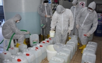 Tekirdağ'ın Ergene ilçesinde lise öğrencileri ve öğretmenler, yeni tip koronavirüs (Kovid-19) önlemleri kapsamında, kamu kurumları ve özel sektör için dezenfektan üretiyor